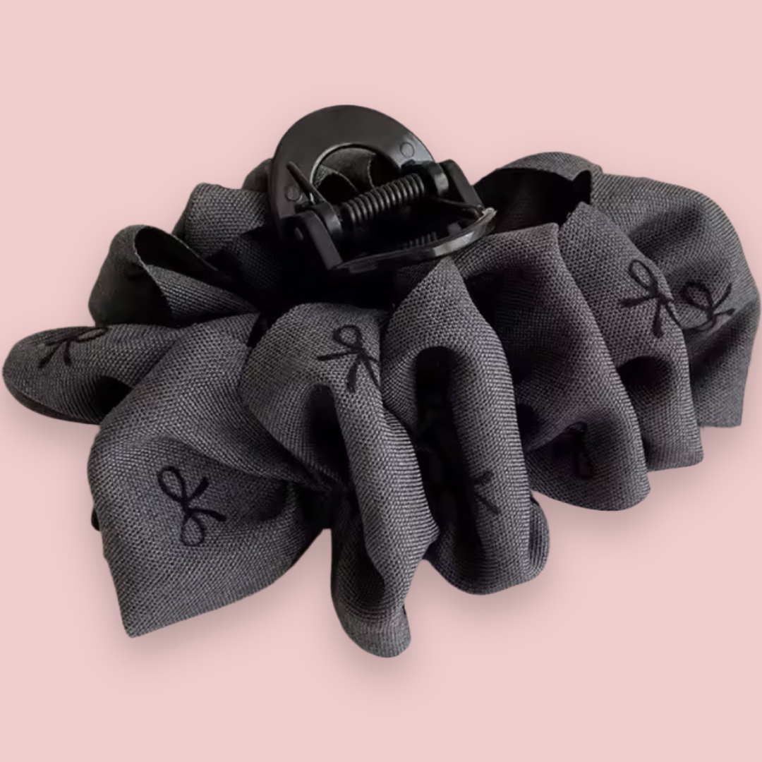 Tilføj et feminint og stilfuldt touch til din frisure med denne smukke hårklemme i stof. Det eksklusive stof er dekoreret med fine, vævede sløjfer, som giver et elegant og legende udtryk. Hårklemmen kombinerer komfort og holdbarhed med et let og blødt design, der sidder sikkert i håret hele dagen uden at trække eller slide.
